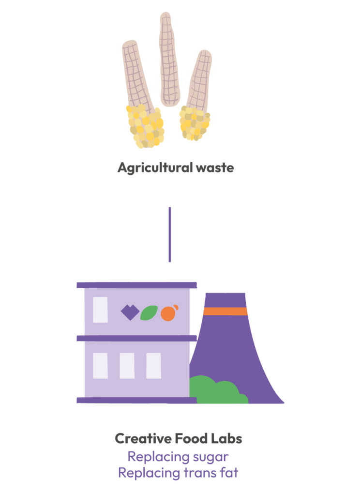 We’re starting with xylitol, a market worth over $1 billion USD, setting the foundation for our production process. Once scaled to a pilot plant, we will begin developing other sugar substitutes from agricultural waste, using enzymatic and fermentation processes: xylooligosaccharides (sugar fibers), allulose, and erythritol—each developed one at a time to ensure quality and efficiency. After scaling sugar substitutes, we’ll initiate production of oleogels to provide sustainable, healthy alternatives to trans fats.